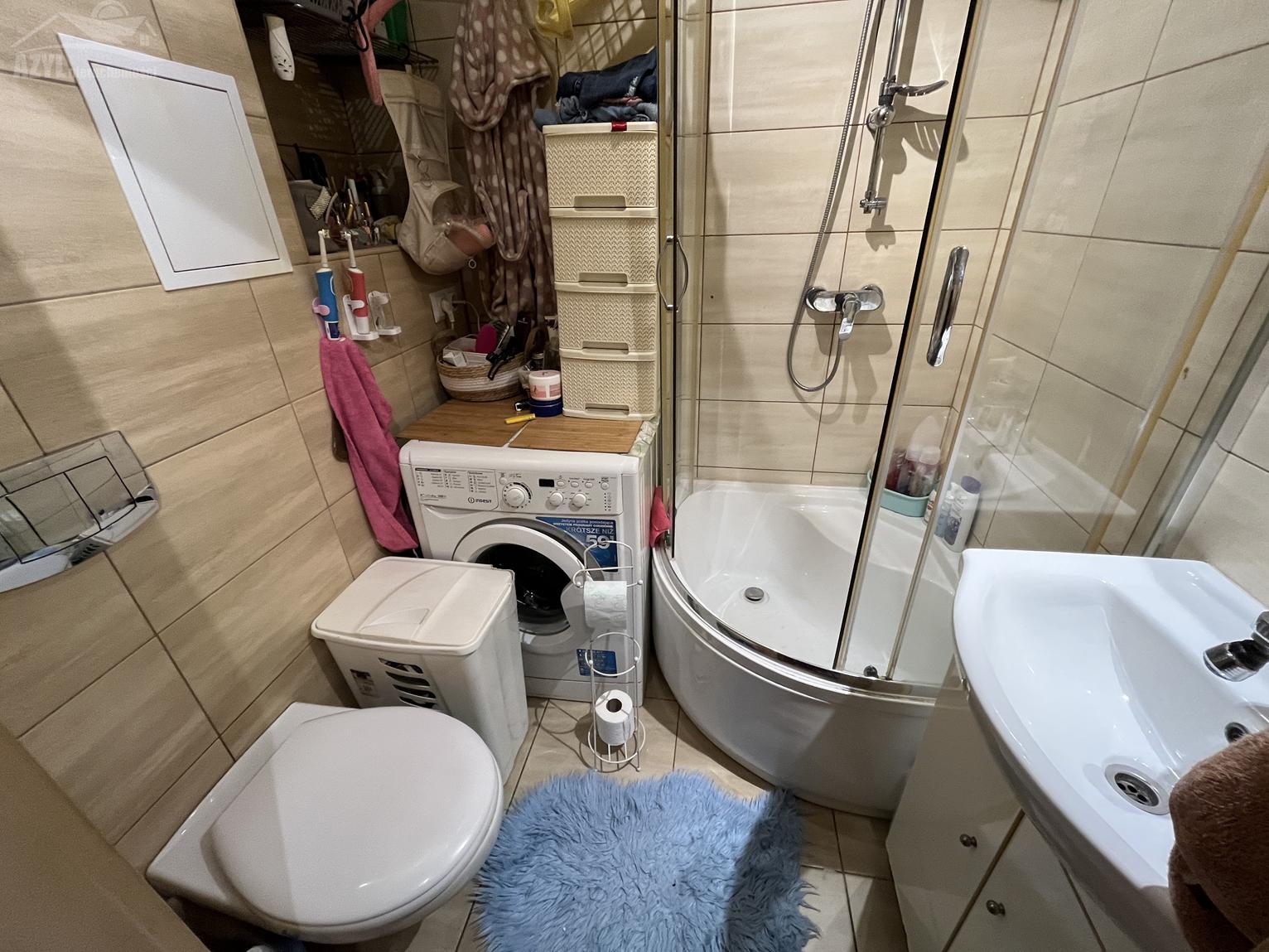 - łazienka w płytkach (kabina prysznicowa),